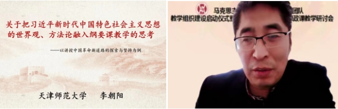 会上,李朝阳教授作了题为《关于把习近平新时代中国特色社会主义思想的世界观、方法论融入纲要课教学的思考——以讲授中国革命新道路的探索与坚持为例》的专题讲座。他以深厚的理论功底、透彻的学理分析和生动的教学案例对“六个坚持”融入纲要课教学的必要性、党的二十大精神融入“中国近现代史纲要”课程等问题进行了深刻阐释,使参会者受益匪浅。